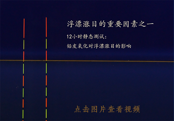 b.測試方法:將兩支掛有相同鉛墜的浮漂同時(shí)放水里測試,在12小時(shí)后觀察漂目的變化。